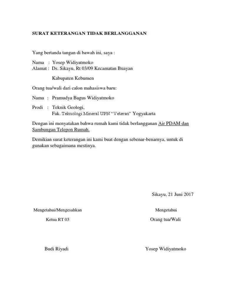 Diundang 3 kali rapat tidak hadir, . Surat keterangan tidak berlangganan yang bertanda tangan di bawah ini, saya : Menginput data pelanggan sesuai dengan fc rekening dalam pass system. Doc surat pernyataan pdam hendri yani academiaedu. Surat keterangan tidak berlangganan pdam :